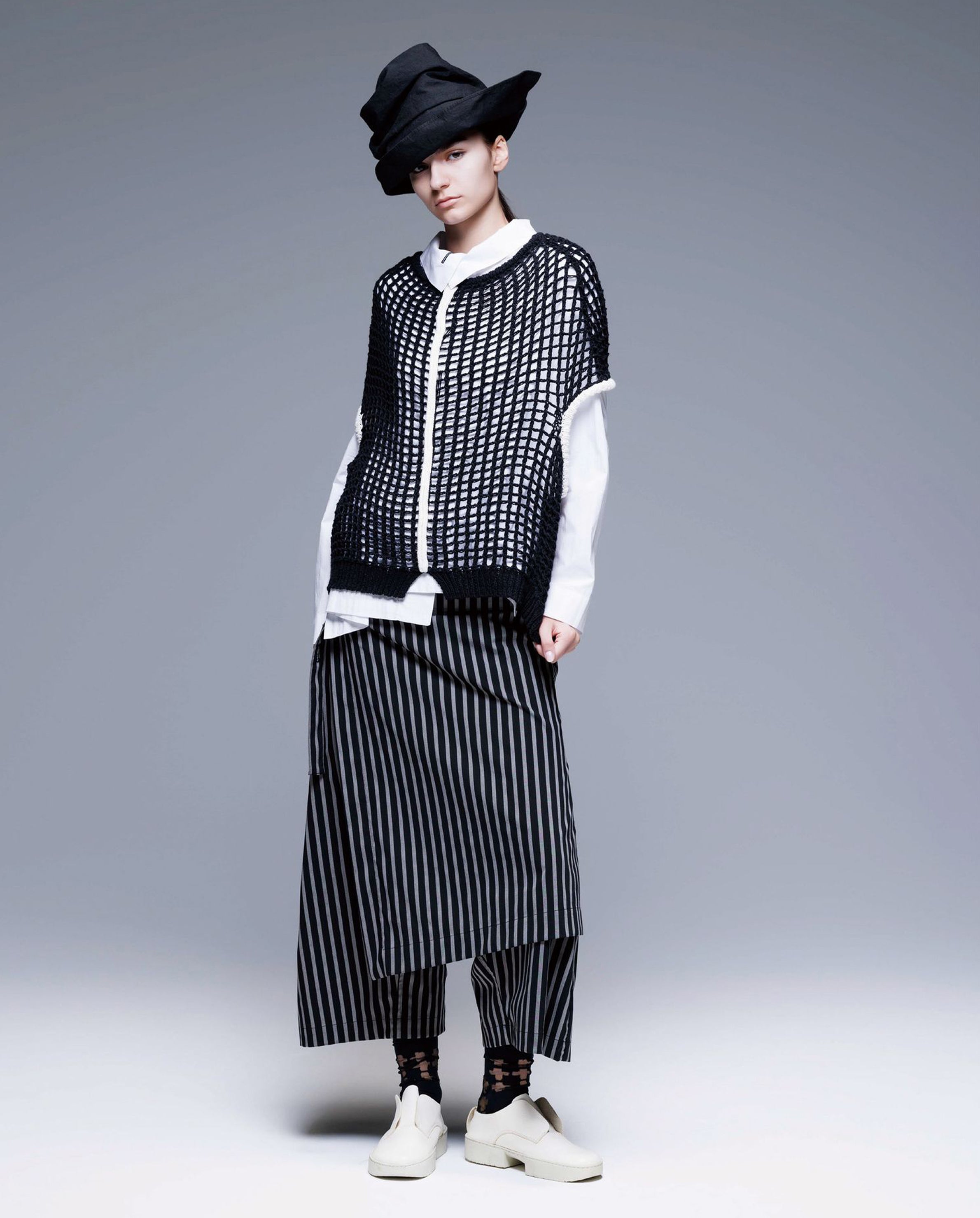 CROCHET KNIT VEST BLACK WHITE TRIM