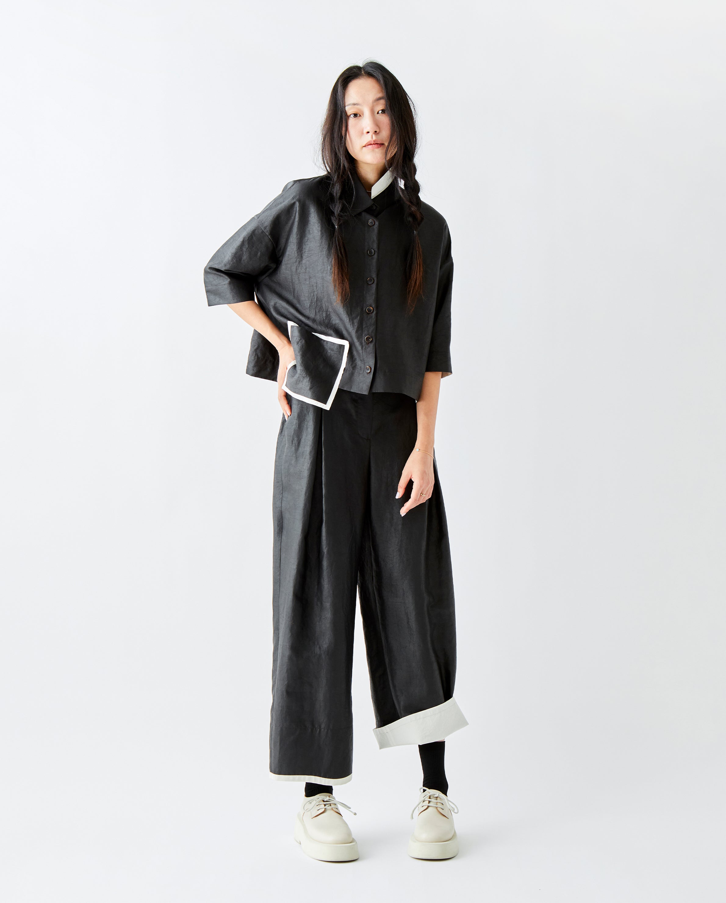Sold outPOCKET SILK SHIRT BM190 CLAY BLACKPOCKET SILK SHIRT BM190 CLAY BLACK