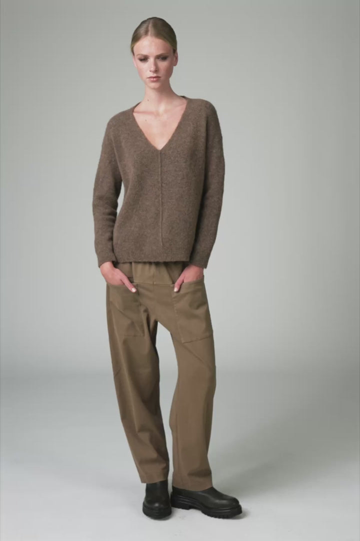 V NECK KNIT JUMPER TOBACCO